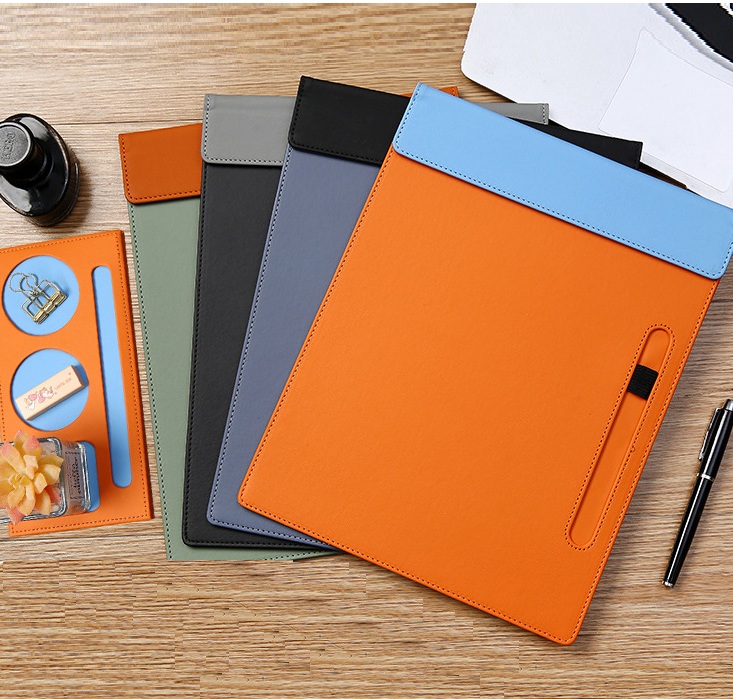 A professional necessity, our Clipboard Holders combine a sturdy paperboard base with the refined look of leather accents for on-the-go use.