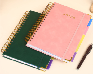 – Branding Customization: Focus on cover design, paper type (lined, dotted, blank), size, and binding color.